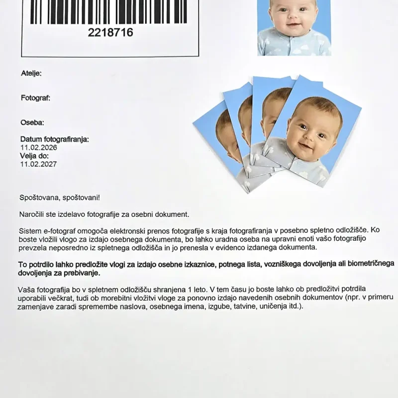 Fotografije za osebne dokumente brez naročanja. Zraven Upravne enote Kranj.